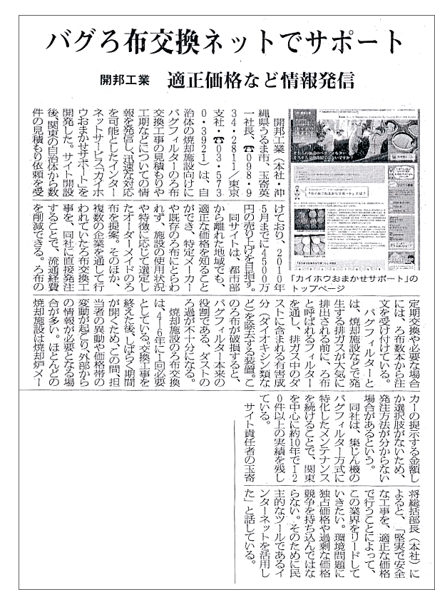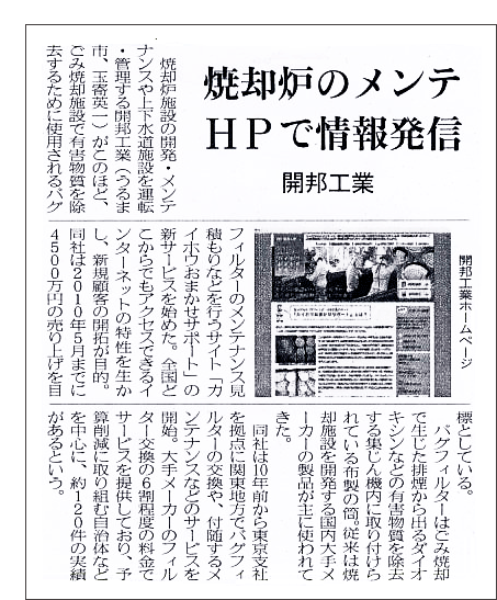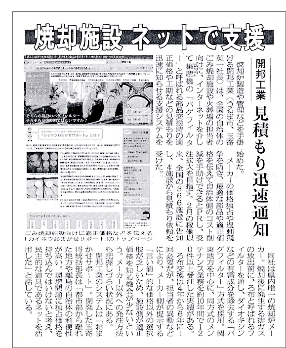 環境新聞で「カイホウおまかせサポート」が紹介されました!